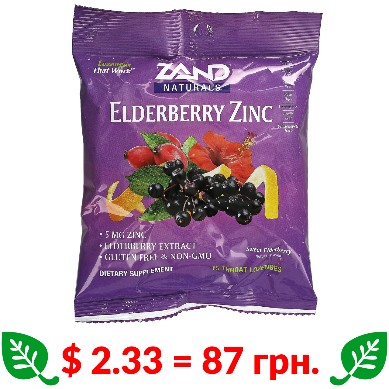 $ 2.33 = 87 грн. Zand, бузина та цинк, солодка бузина, 15 пастилок для горла