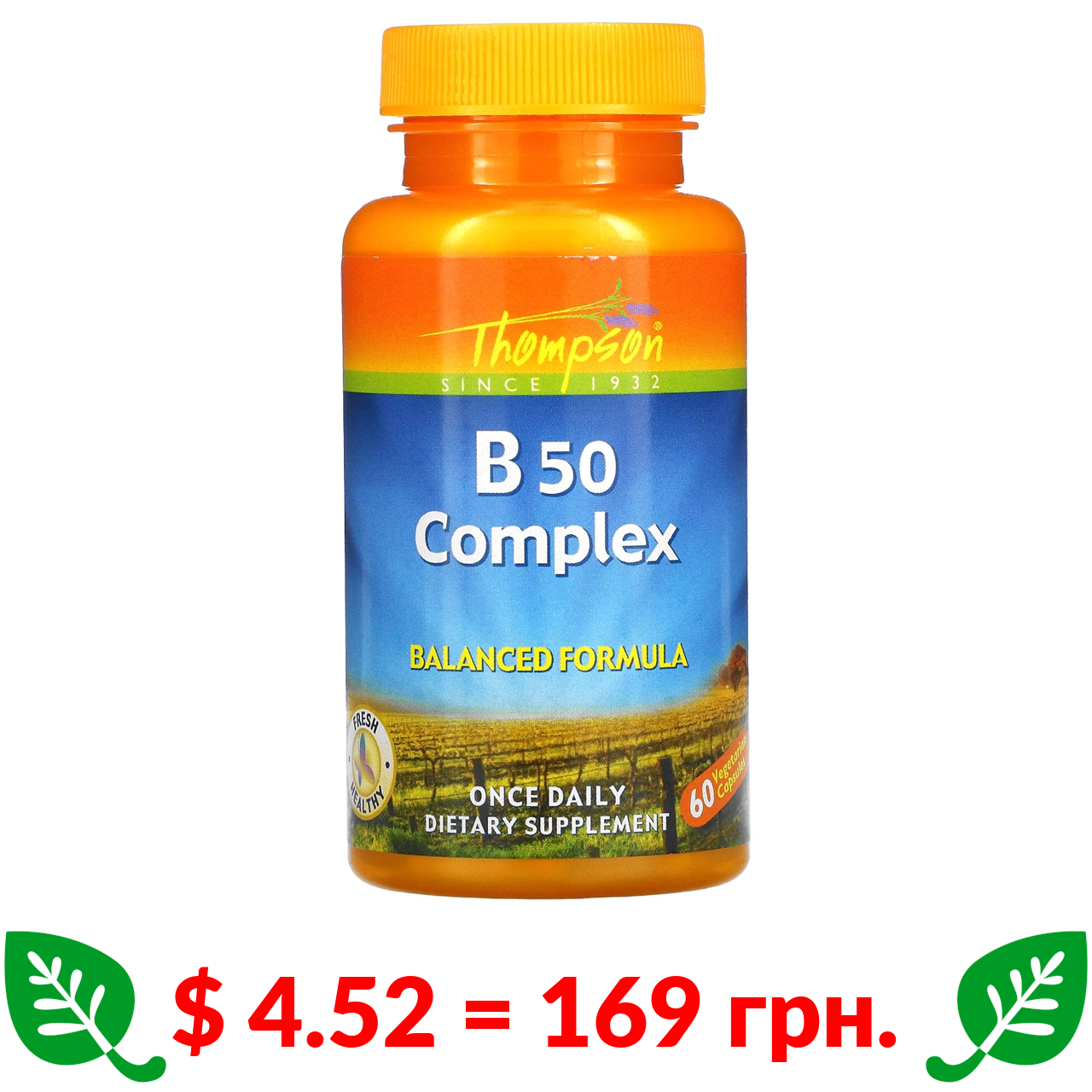 $ 4.52 = 169 грн. Thompson, комплекс В50, 60 вегетаріанських капсул