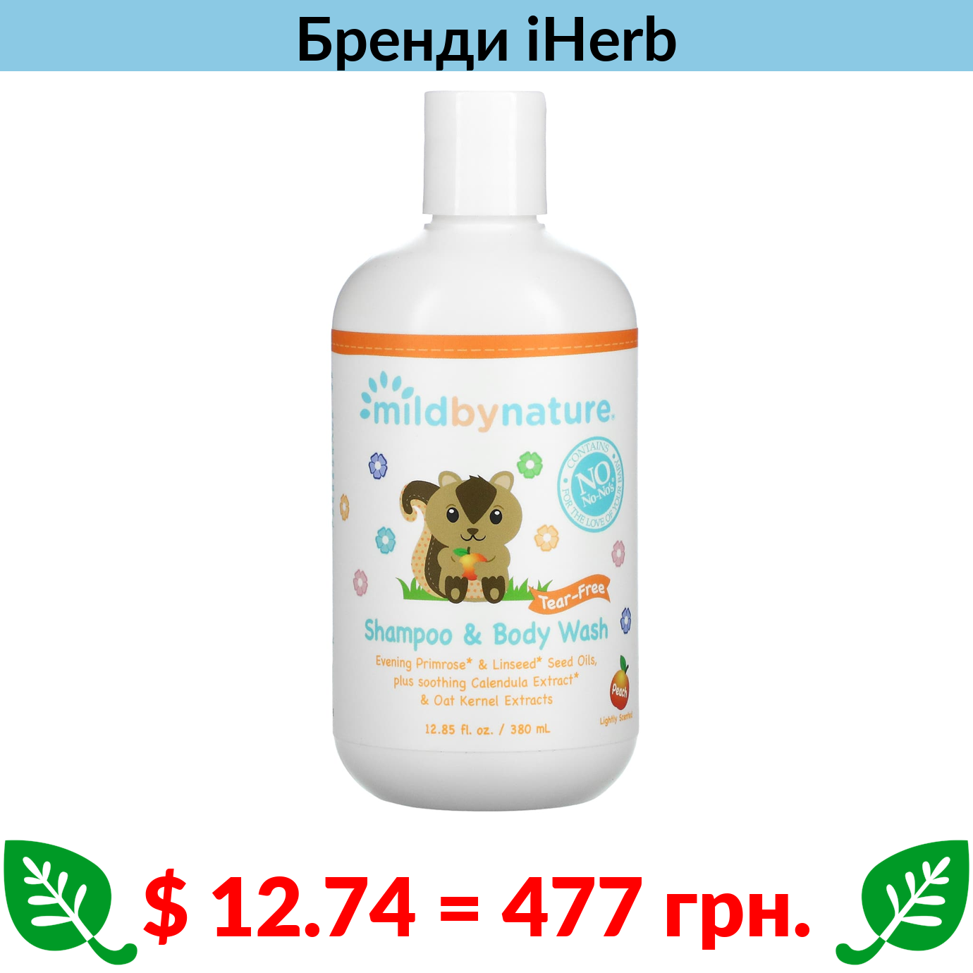 $ 12.74 = 477 грн. Mild By Nature, дитячий шампунь і гель для душу, безпечний для очей, з ароматом персика, 380 мл (12,85 рідк. унції)