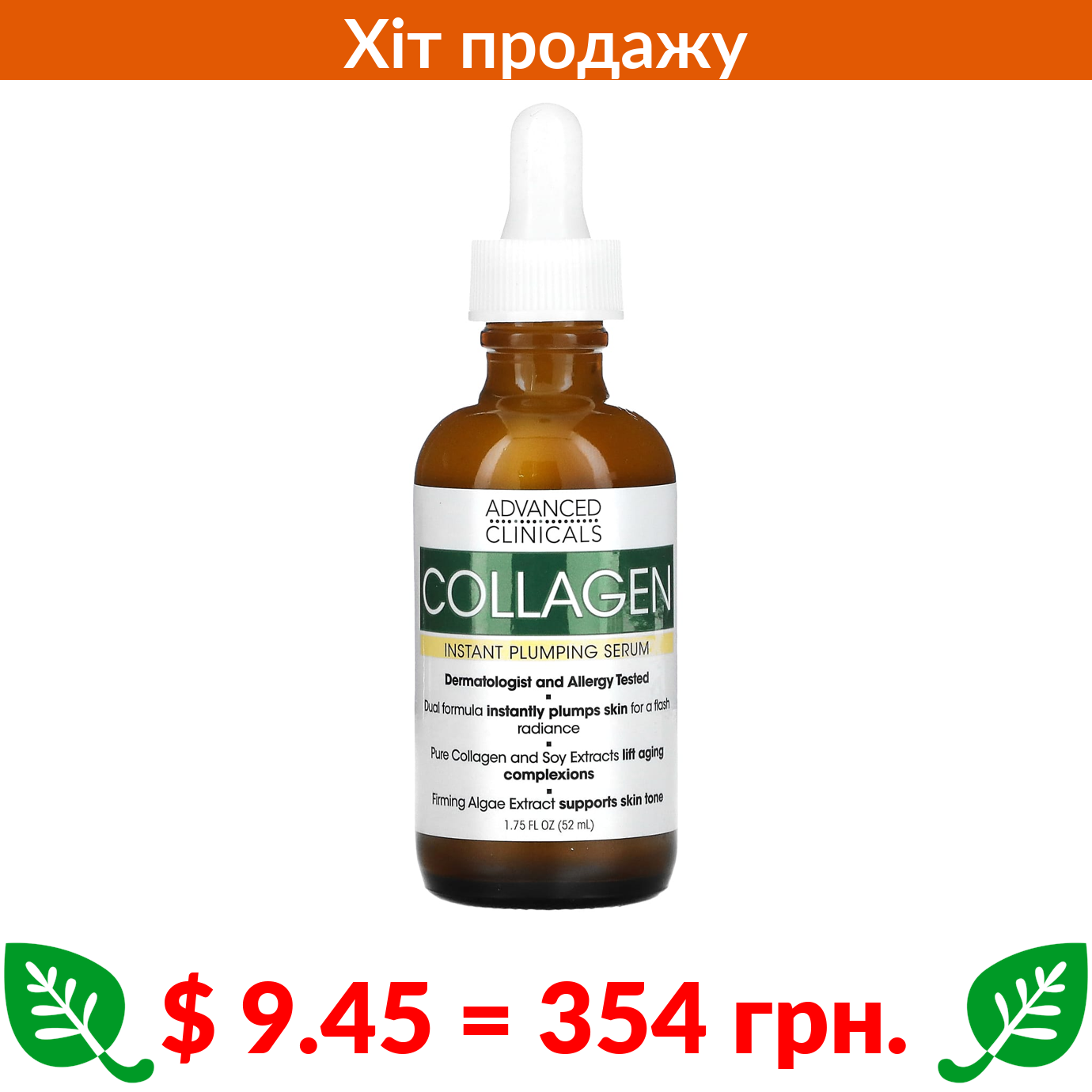 $ 9.45 = 354 грн. Advanced Clinicals, колаген, миттєва сироватка пружності шкіри, 52 мл (1,75 рідк. унції))