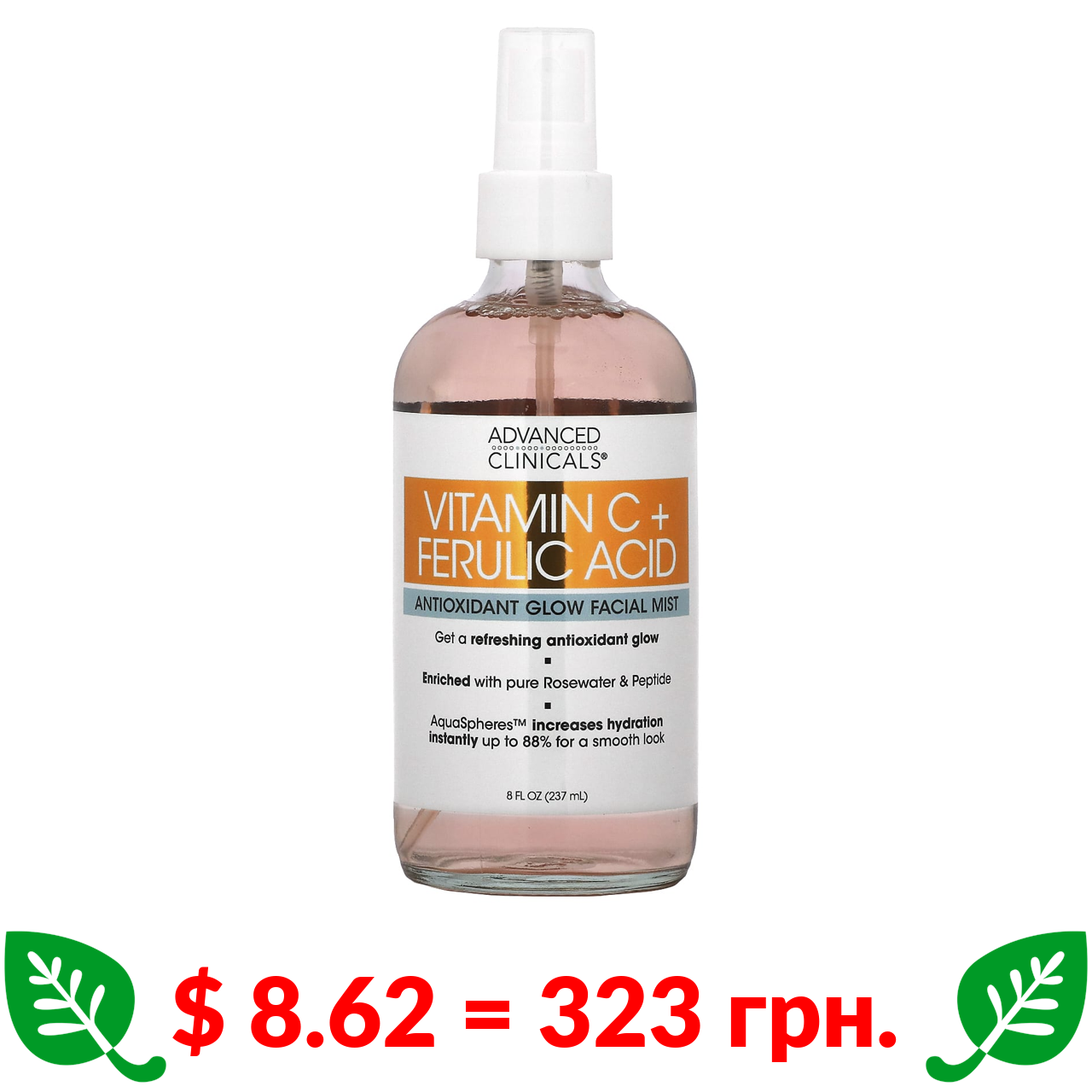 $ 8.62 = 323 грн. ?️ у кошику ?️ Advanced Clinicals, Vitamin C + Ferulic Acid, Antioxidant Glow Facial Mist, 8 fl oz (237 ml)