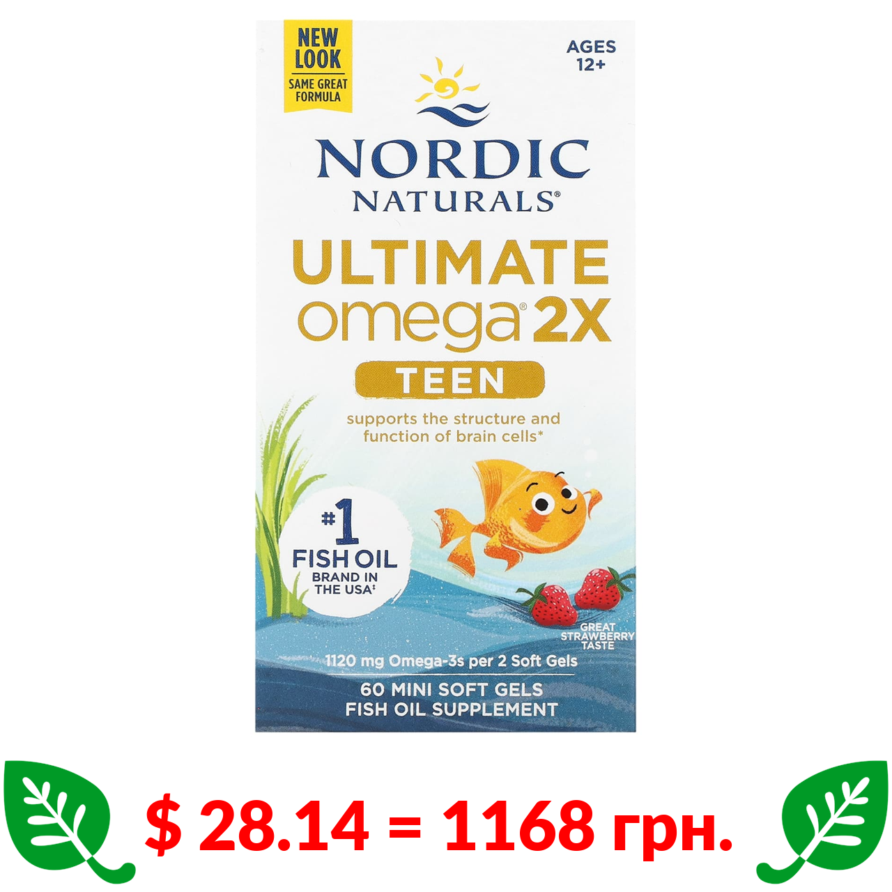 $ 28.14 = 1168 грн. ????️ у кошику ????️ Nordic Naturals, Teen, Ultimate Omega 2X, для дітей від 12 років, зі смаком полуниці, 60 мінікапсул