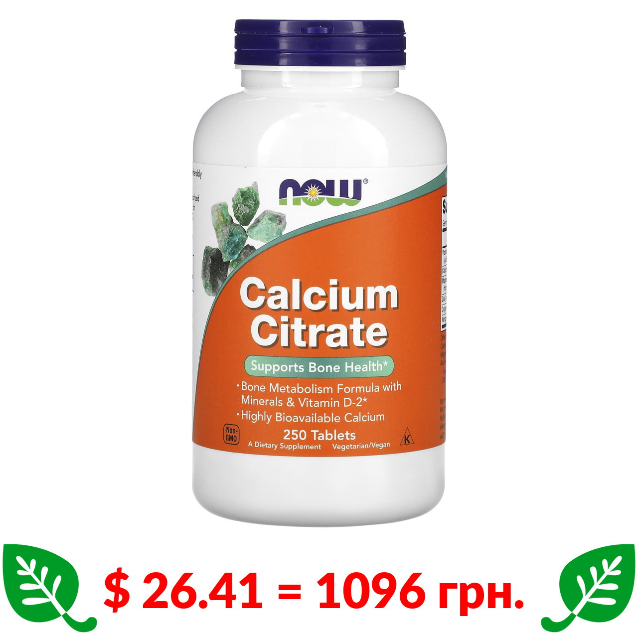$ 26.41 = 1096 грн. Now Foods, цитрат кальцію, 250 таблеток