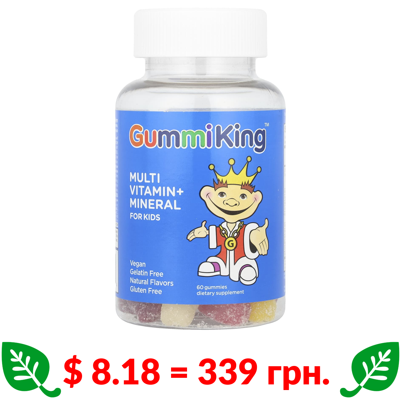 $ 8.18 = 339 грн. ????️ у кошику ????️ GummiKing, мультивітаміни та мінерали для дітей, полуниця, апельсин, лимон, виноград, вишня та грейпфрут, 60 жувальних мармеладок