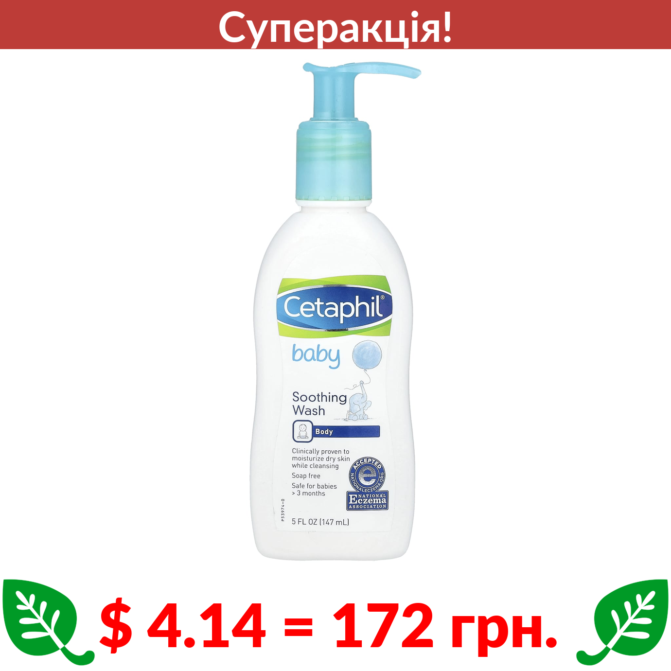 $ 4.14 = 172 грн. ???? cуперакція! ???? Cetaphil, Baby, Заспокійливий засіб для вмивання, 5 рідких унцій (147 мл)