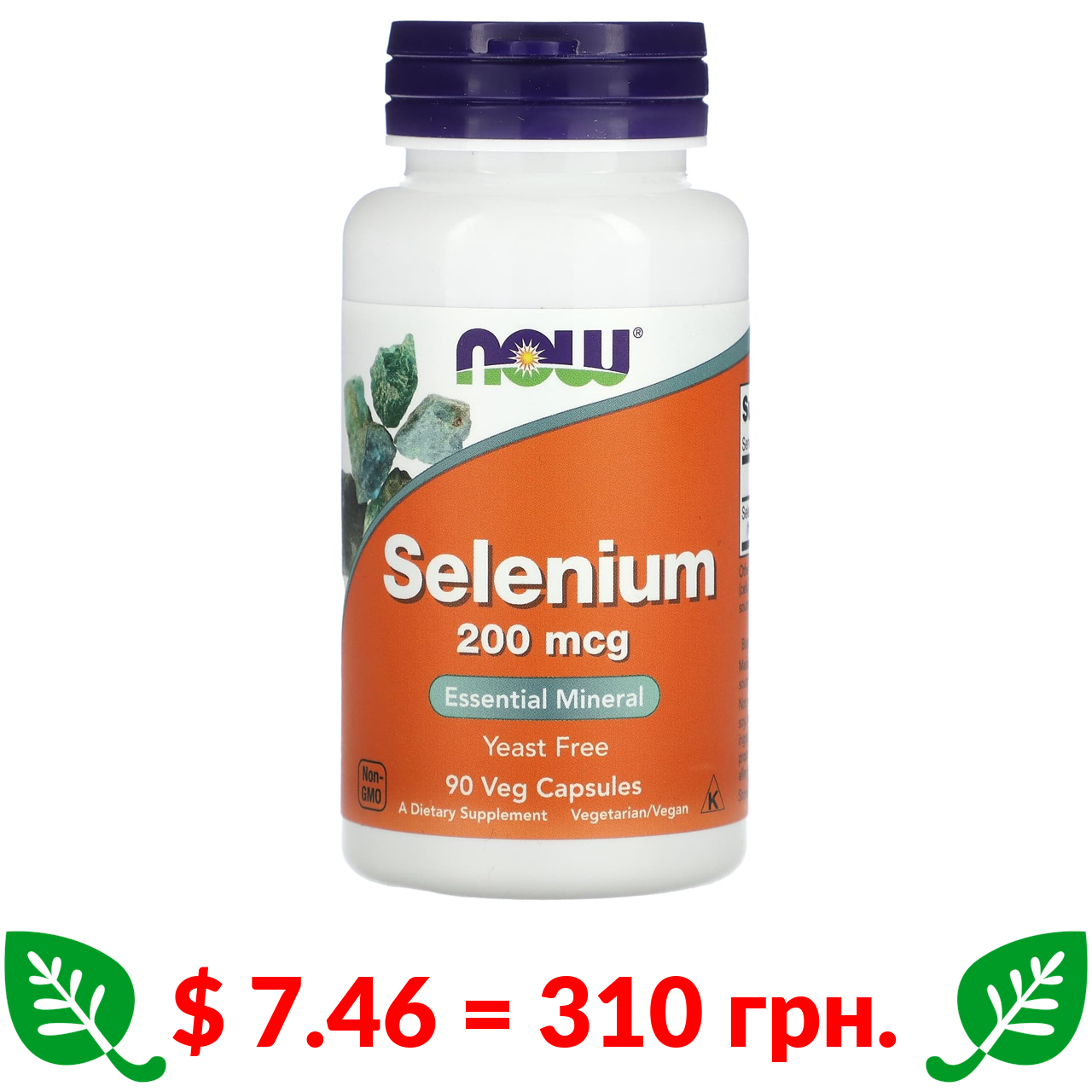 $ 7.46 = 310 грн. Now Foods, селен, 200 мкг, 90 вегетаріанських капсул