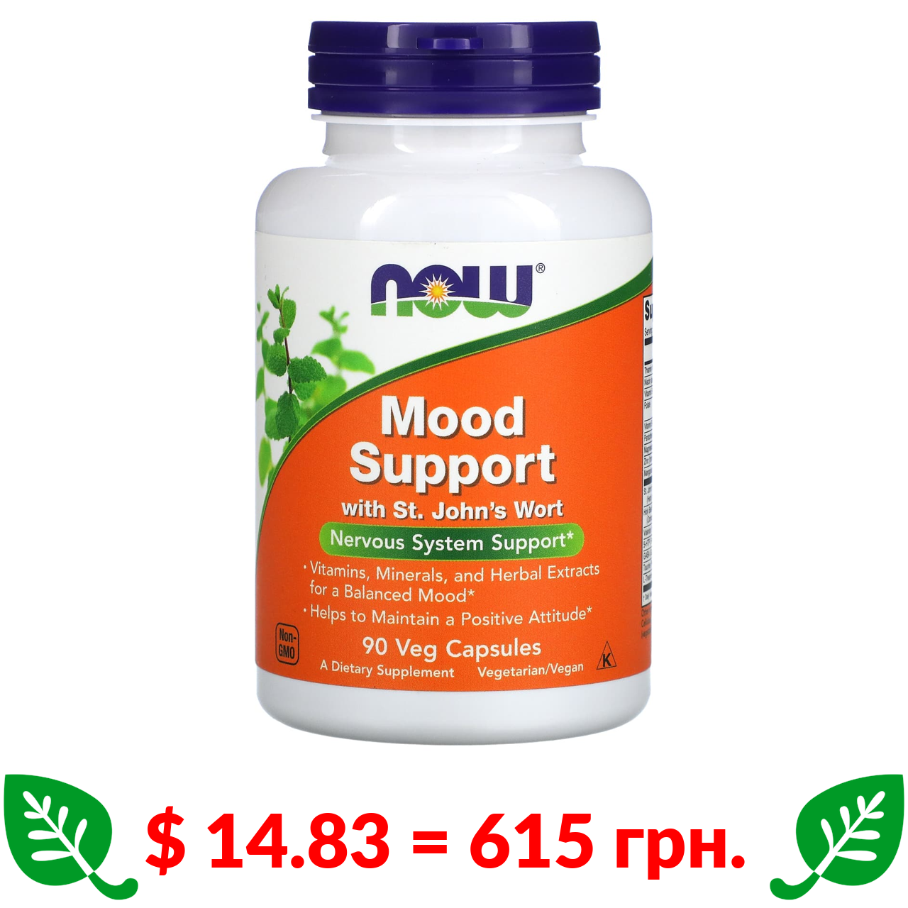 $ 14.83 = 615 грн. Now Foods, засіб для підтримки настрою зі звіробоєм, 90 вегетаріанських капсул