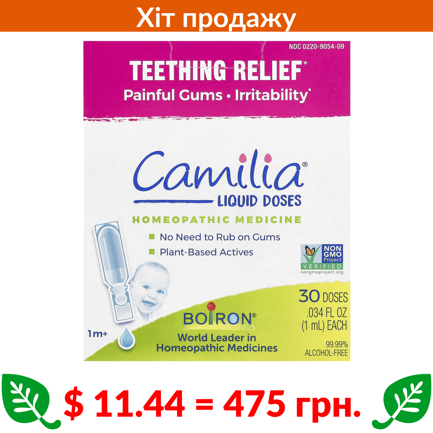 $ 11.44 = 475 грн. ????️ у кошику ????️ Boiron, Camilia, засіб для зняття болю під час прорізування зубів, для немовлят від 1 місяця та старше, 30 відміряних рідких доз, по 1 мл (0,034 рідк. унції)