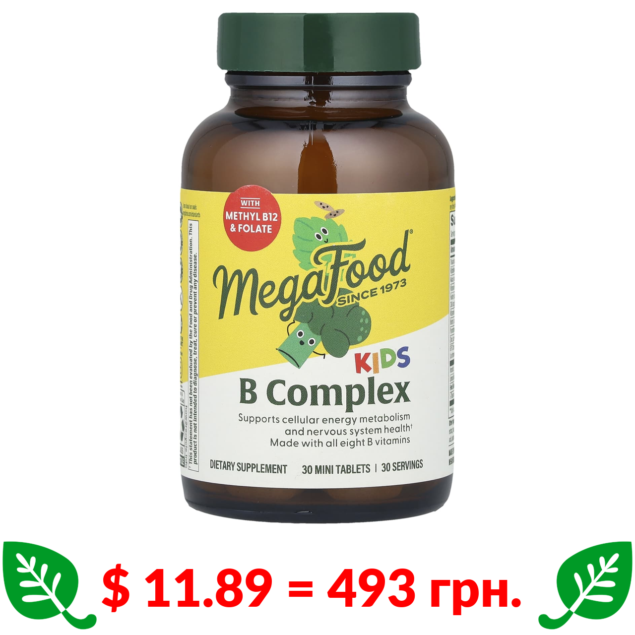 $ 11.89 = 493 грн. ????️ у кошику ????️ MegaFood, Комплекс вітамінів групи B для дітей, 30 таблеток