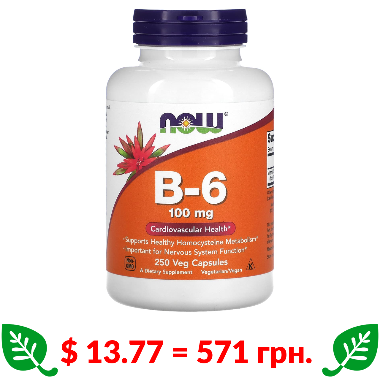 $ 13.77 = 571 грн. Now Foods, вітамін В6, 100 мг, 250 вегетаріанських капсул