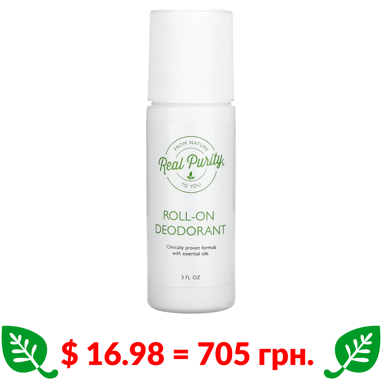 $ 16.98 = 705 грн. Real Purity, кульковий дезодорант, 88,7 мл (3 рідк. унції)