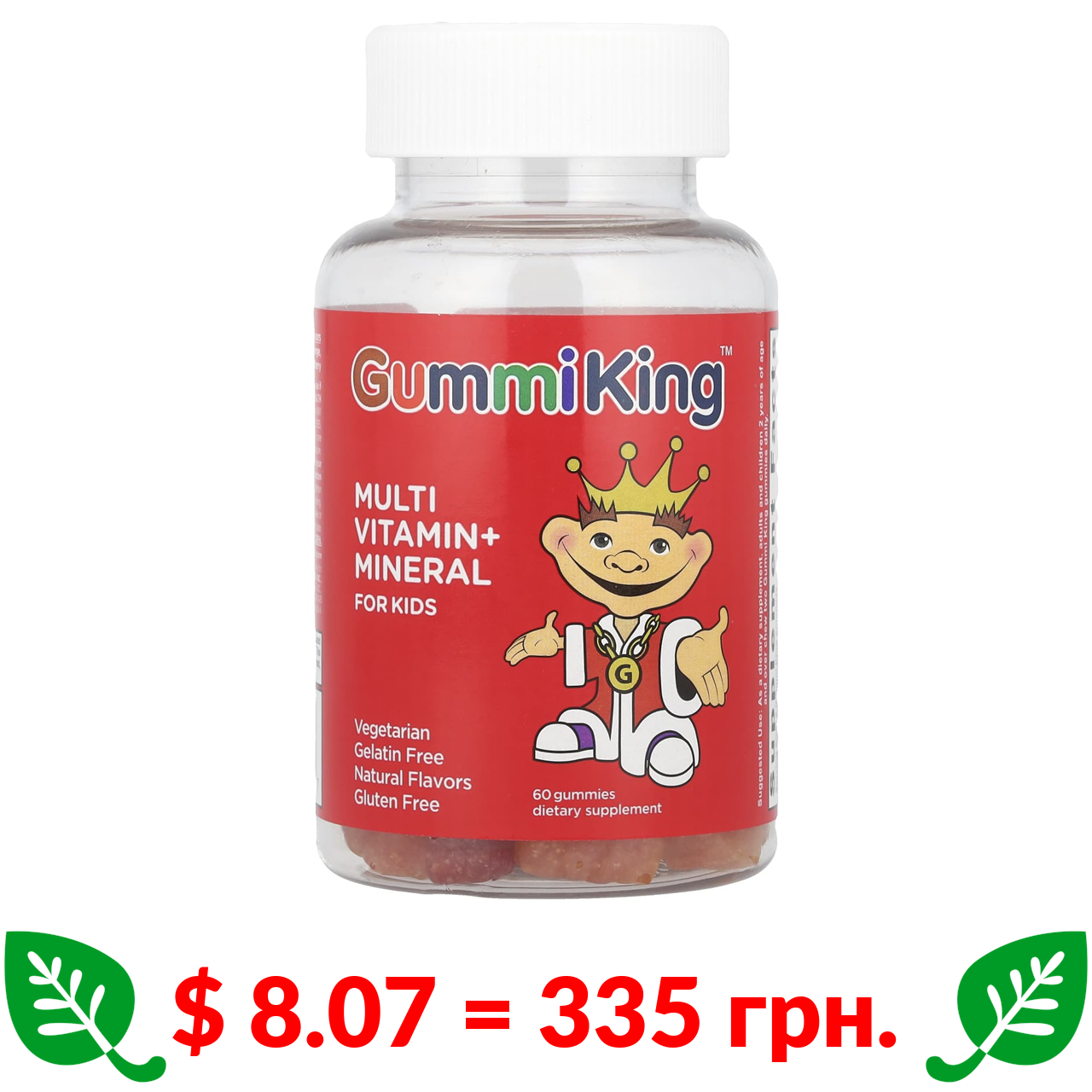 $ 8.07 = 335 грн. ????️ у кошику ????️ GummiKing, мультивітаміни та мікроелементи для дітей, зі смаком винограду, лимону, апельсину, полуниці та вишні, 60 жувальних таблеток