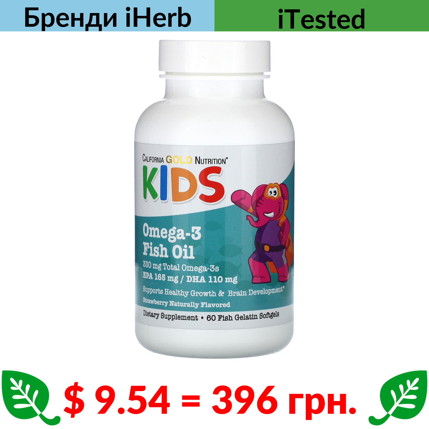 $ 9.54 = 396 грн. ????️ у кошику ????️ California Gold Nutrition, Kid’s, риб’ячий жир з омега-3 для дітей, натуральний смак полуниці, 60 капсул із риб’ячого желатину