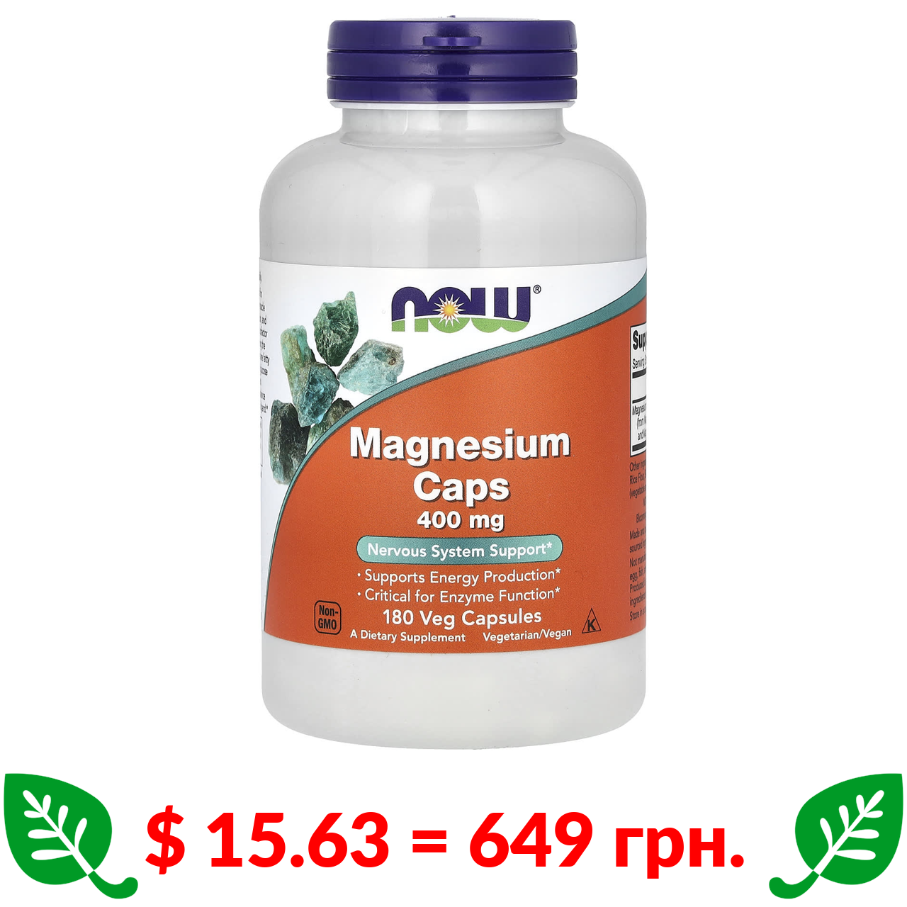 $ 15.63 = 649 грн. Now Foods, капсули з магнієм, 400 мг, 180 вегетаріанських капсул