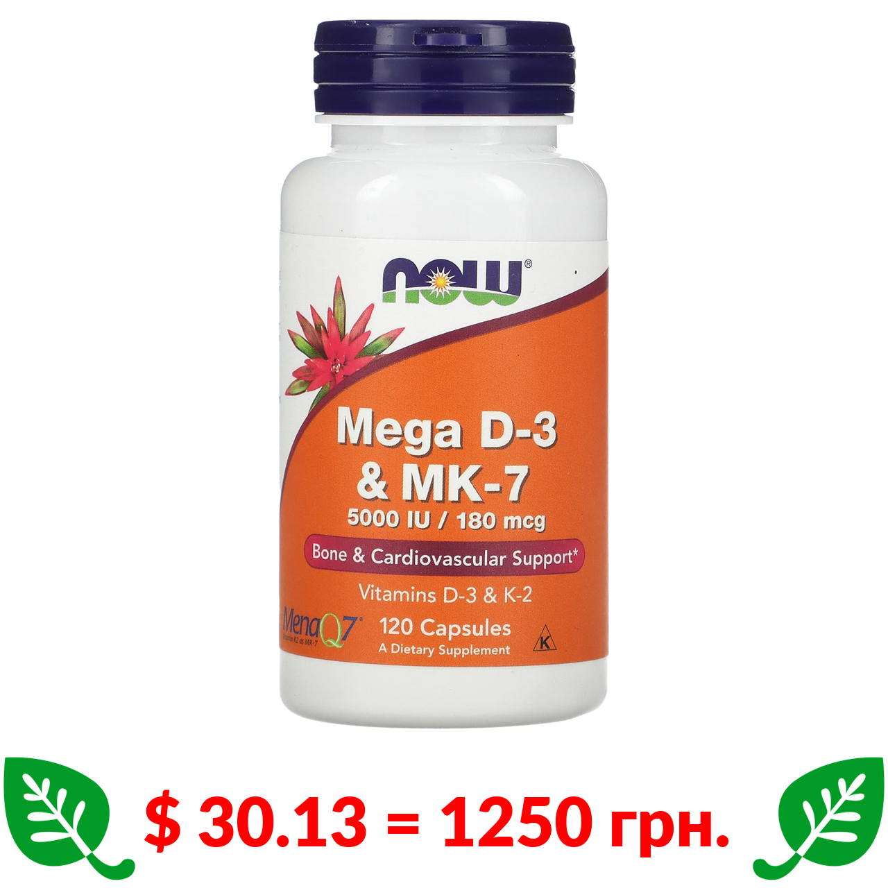 $ 30.13 = 1250 грн. Now Foods, Mega D-3 і MK-7, 120 капсул