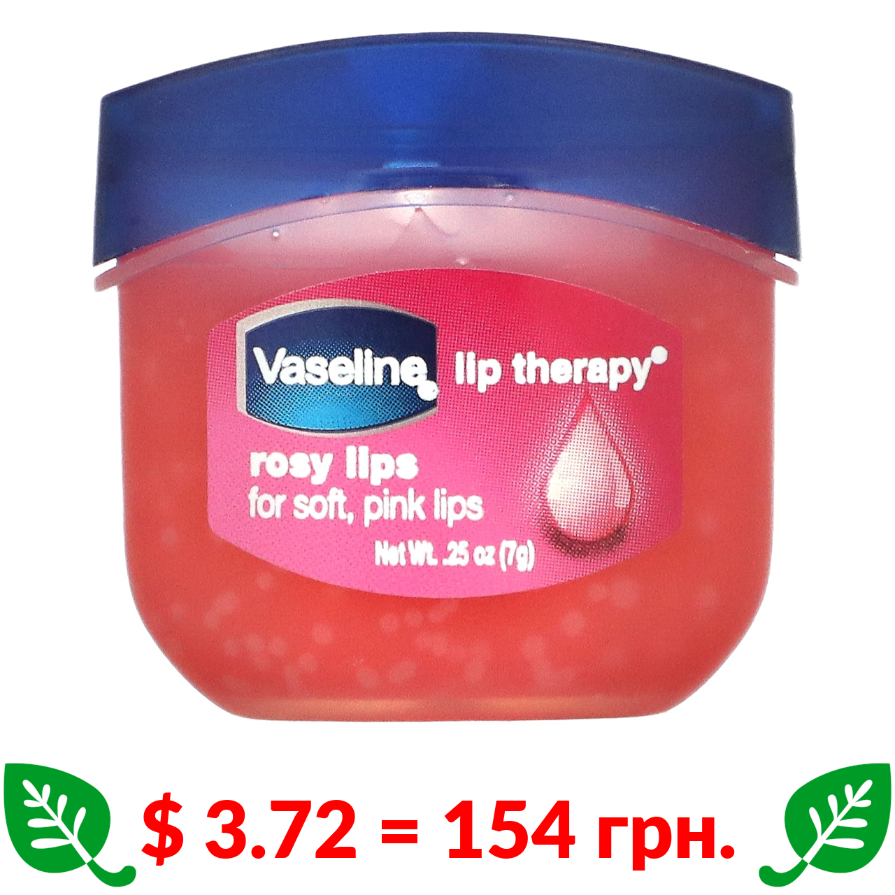 $ 3.72 = 154 грн. Vaseline, Lip Therapy, бальзам для губ, рожеві губи, 7 г (0,25 унції)