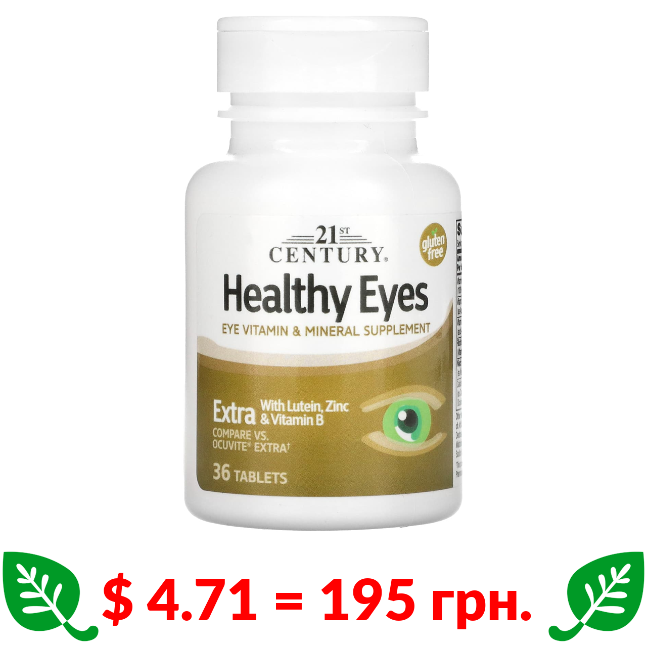 $ 4.71 = 195 грн. 21st Century, добавка для здоров’я очей, Extra, 36 таблеток