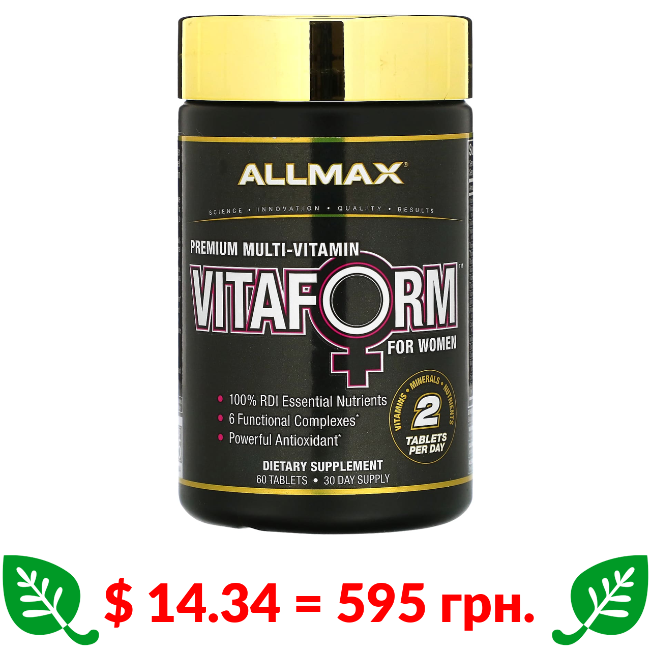 $ 14.34 = 595 грн. ALLMAX, Vitaform, мультивітаміни преміальної якості для жінок, 60 таблеток