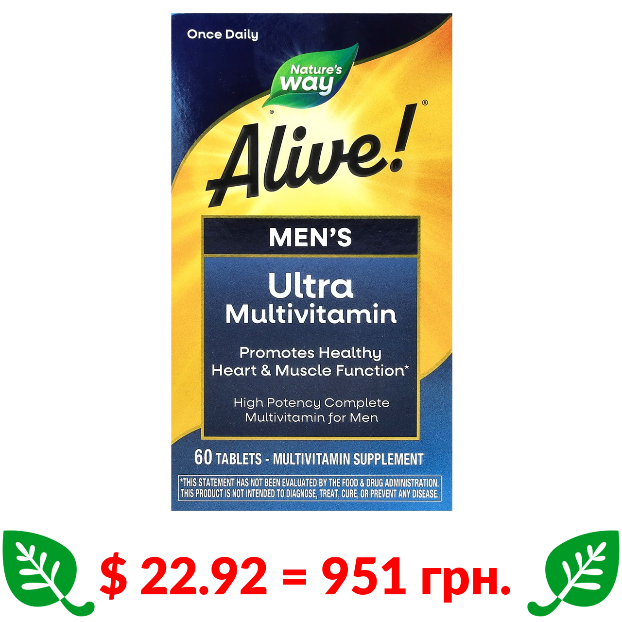 $ 22.92 = 951 грн. Nature’s Way, Alive!, ультрамультивітаміни для чоловіків, 60 таблеток