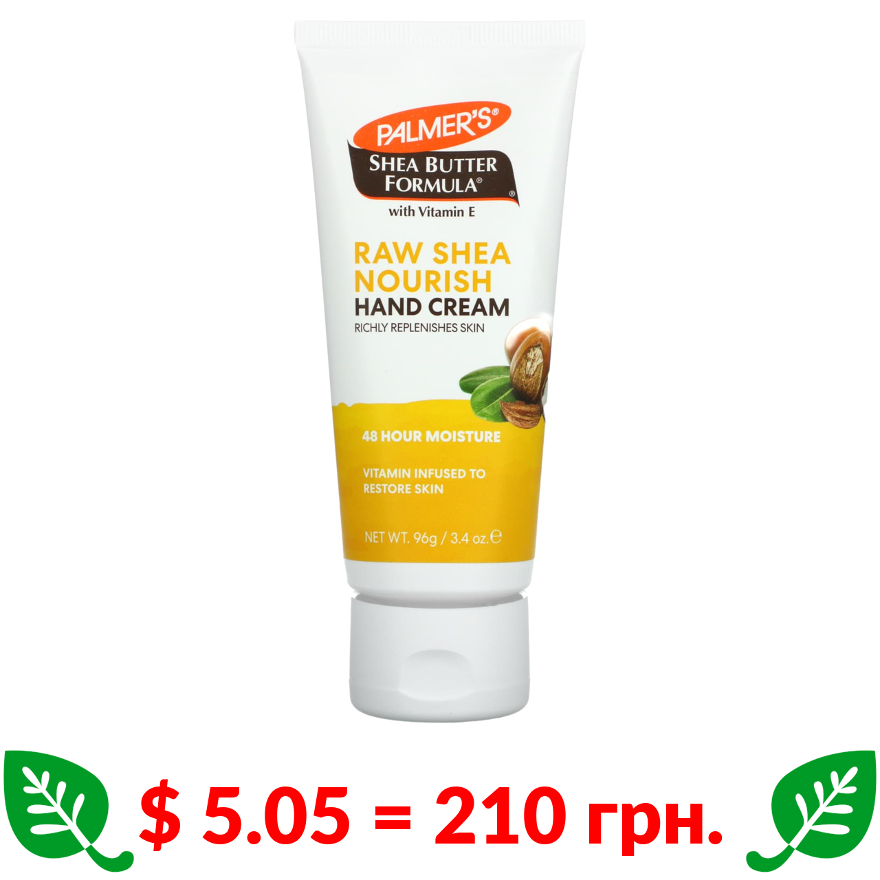 $ 5.05 = 210 грн. Palmers, Shea Butter Formula, живильний крем для рук із необробленим маслом ши та вітаміном Е, 96 г (3,4 рідк. унції)