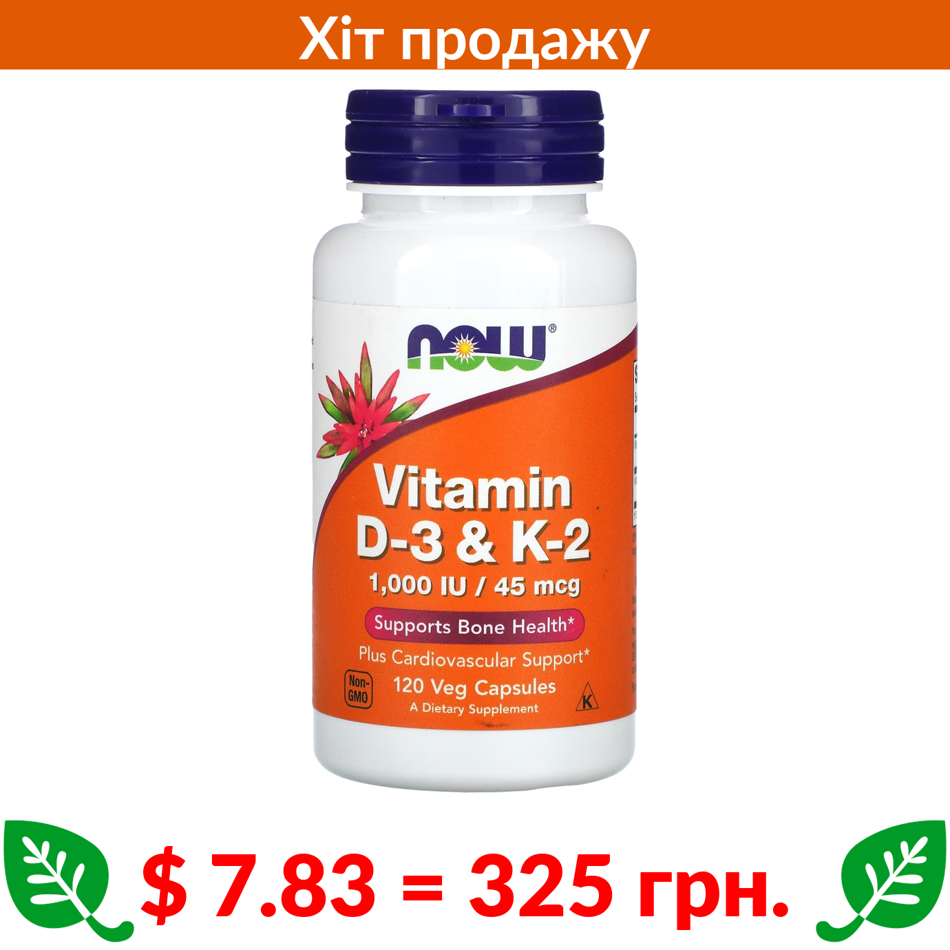 $ 7.83 = 325 грн. ????️ у кошику ????️ Now Foods, вітаміни D3 та K2, 120 рослинних капсул