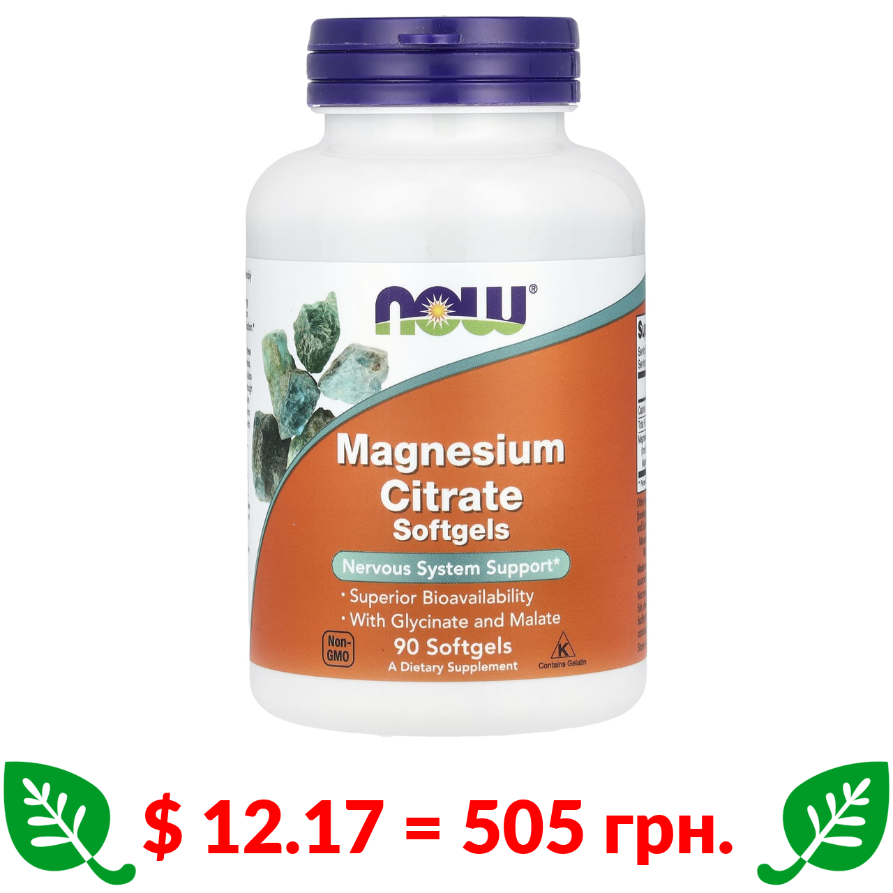 $ 12.17 = 505 грн. Now Foods, цитрат магнію, 90 капсул