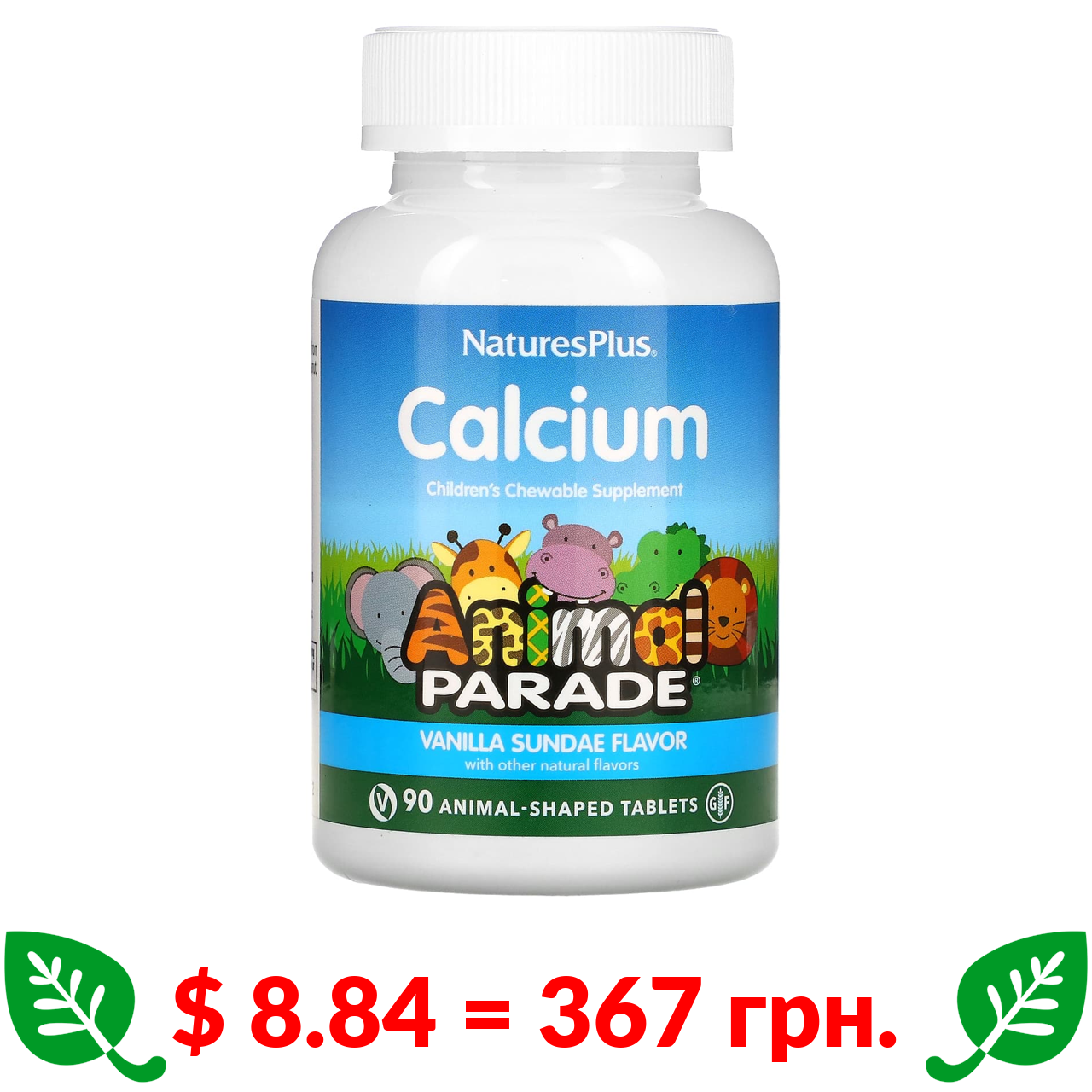 $ 8.84 = 367 грн. ????️ у кошику ????️ Nature’s Plus, Source of Life, Animal Parade, кальцій, дитяча жувальна добавка з натуральним смаком ванільного морозива, 90 таблеток у формі тварин
