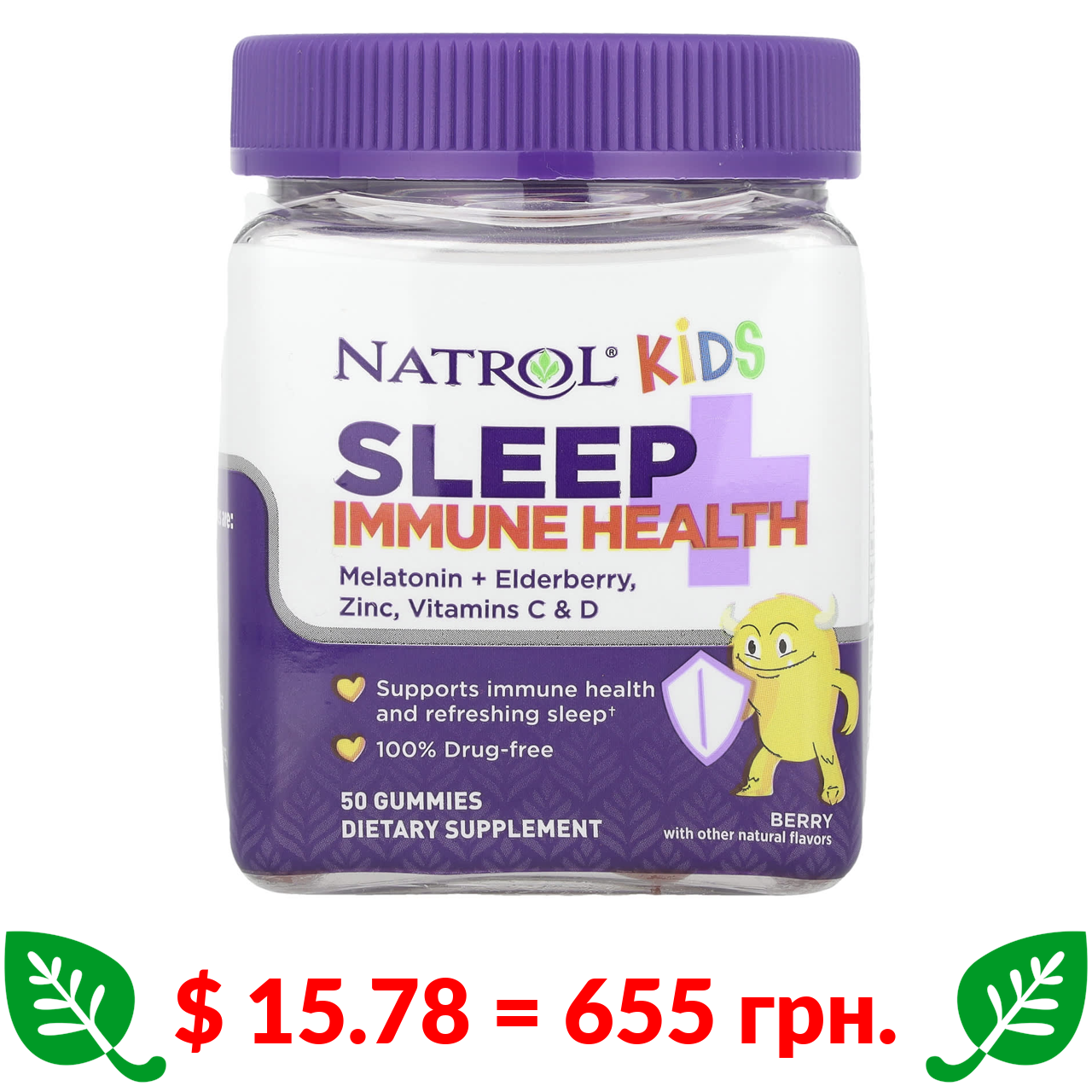 $ 15.78 = 655 грн. ????️ у кошику ????️ Natrol, Kids, дитяча добавка для підтримки сну й імунітету, з ягідним смаком, 50 жувальних мармеладок