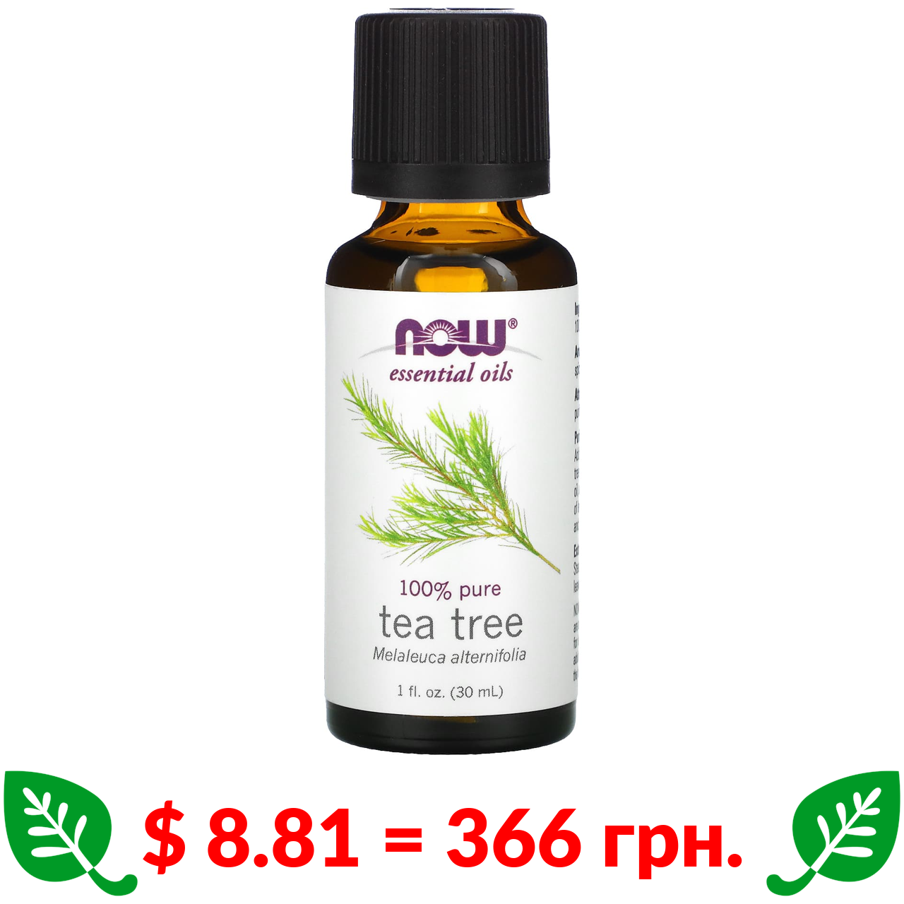 $ 8.81 = 366 грн. Now Foods, ефірна олія, чайне дерево, 30 мл (1 рідк. унція)