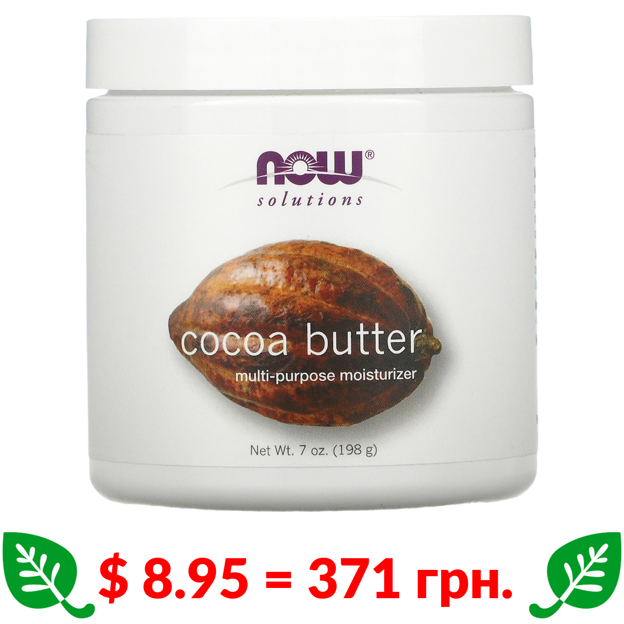 $ 8.95 = 371 грн. Now Foods, Solutions, масло какао, 198 мл (7 рідк. унцій)