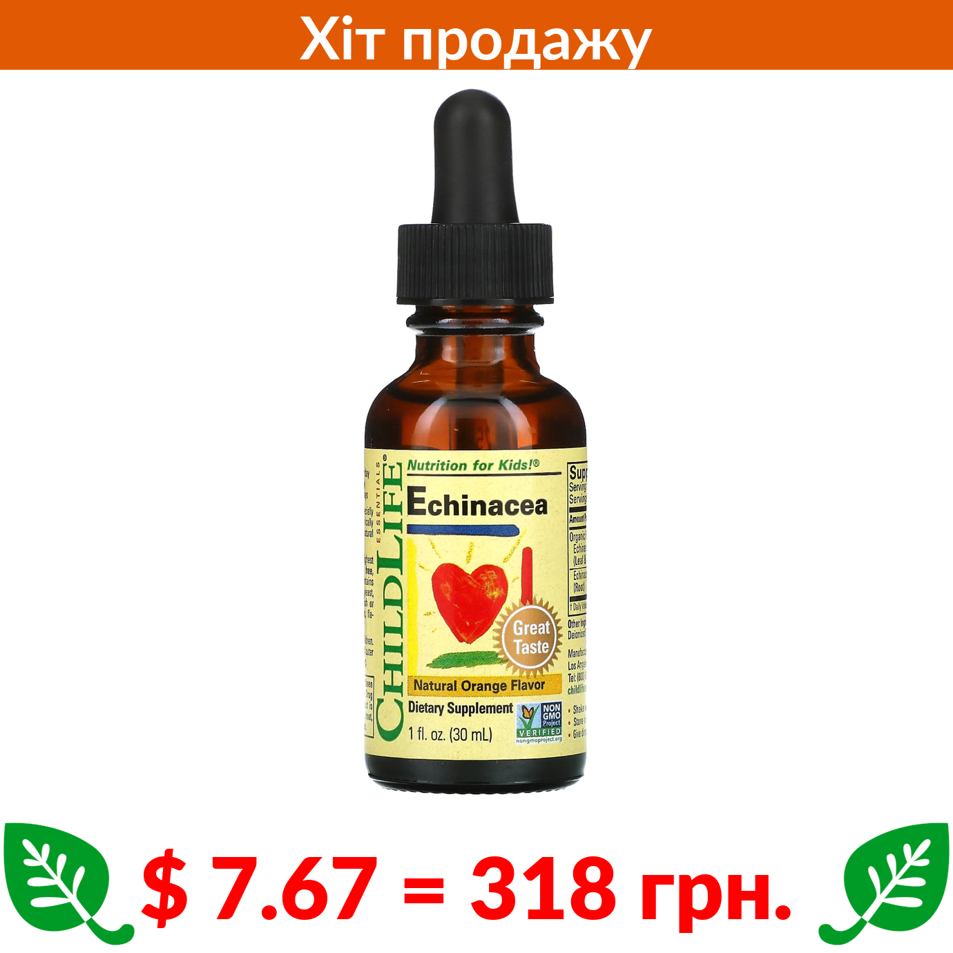 $ 7.67 = 318 грн. ????️ у кошику ????️ ChildLife Essentials, Essentials, ехінацея, зі смаком натурального апельсина, 30 мл (1 рідк. унція)