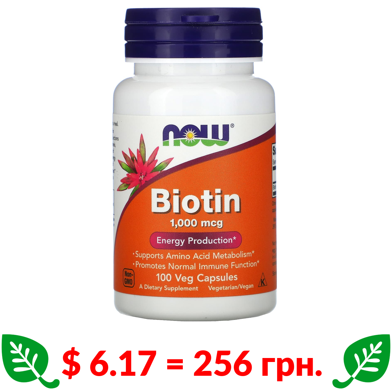 $ 6.17 = 256 грн. Now Foods, біотин, 1000 мкг, 100 вегетаріанських капсул