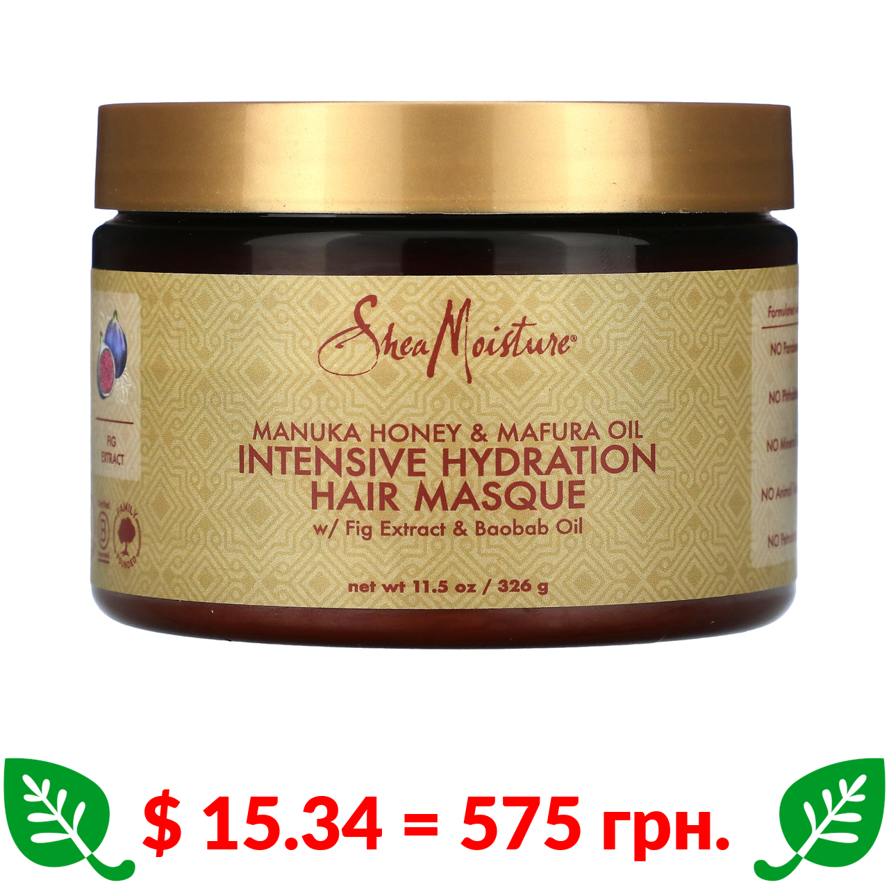 $ 15.34 = 575 грн. SheaMoisture, маска для інтенсивного зволоження волосся з медом манука та олією мафури, 326 мл (11,5 рідк. унції)