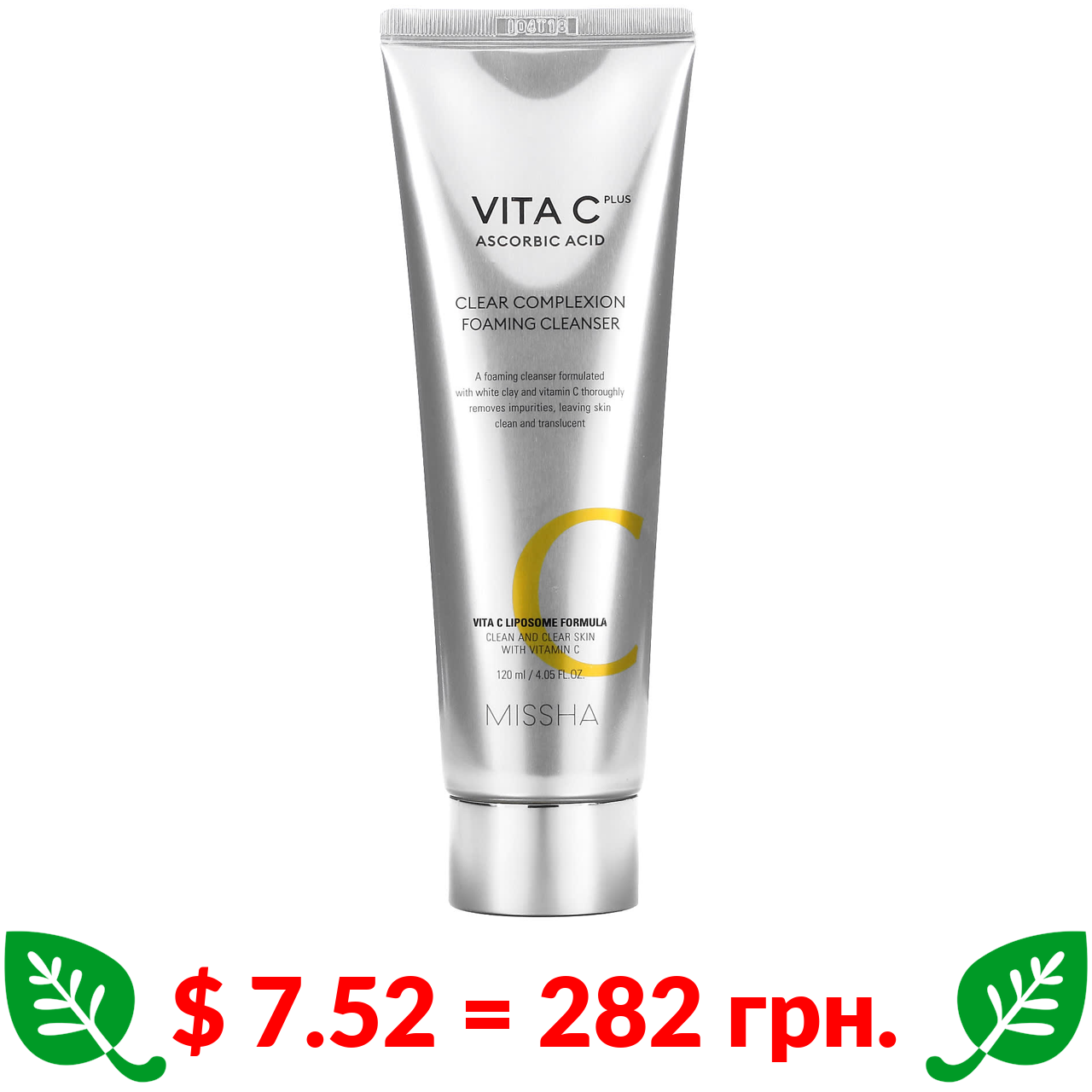 $ 7.52 = 282 грн. ????️ у кошику ????️ Missha, Vita C Plus Ascorbic Acid, Clear Complexion Foaming Cleanser, 4.05 fl oz (120 ml)
