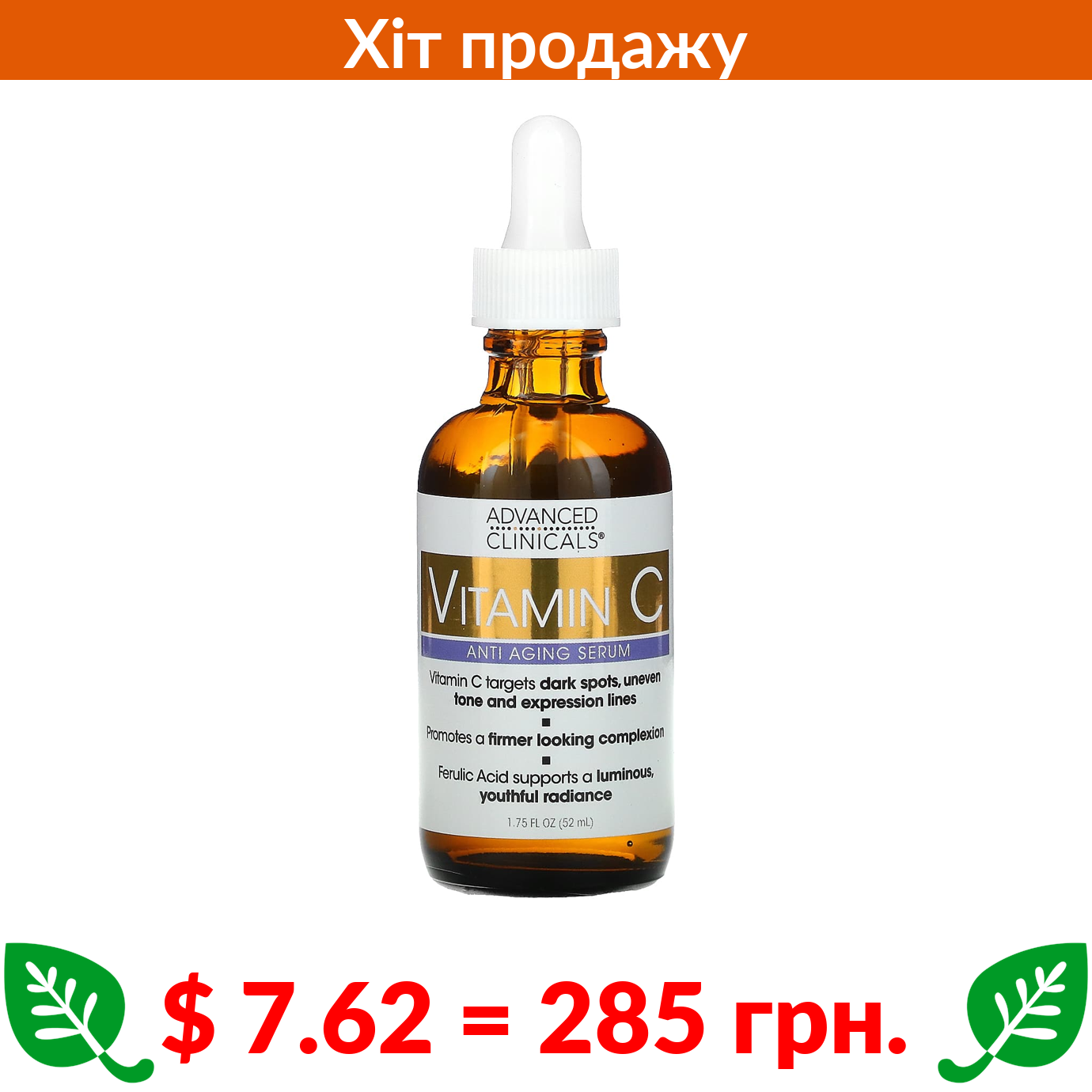 $ 7.62 = 285 грн. ????️ у кошику ????️ Advanced Clinicals, вітамін С, антивікова сироватка, 52 мл (1,75 рідк. унції)