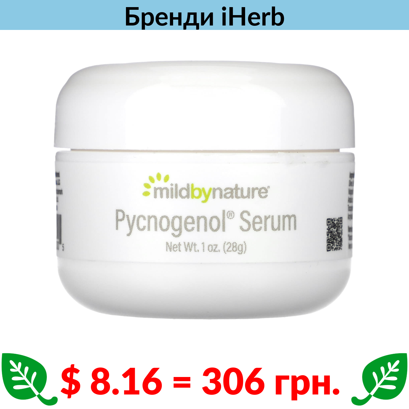 $ 8.16 = 306 грн. Mild By Nature, Pycnogenol, сироватка (крем), заспокійливий омолоджувальний засіб, 28 г (1 унція)