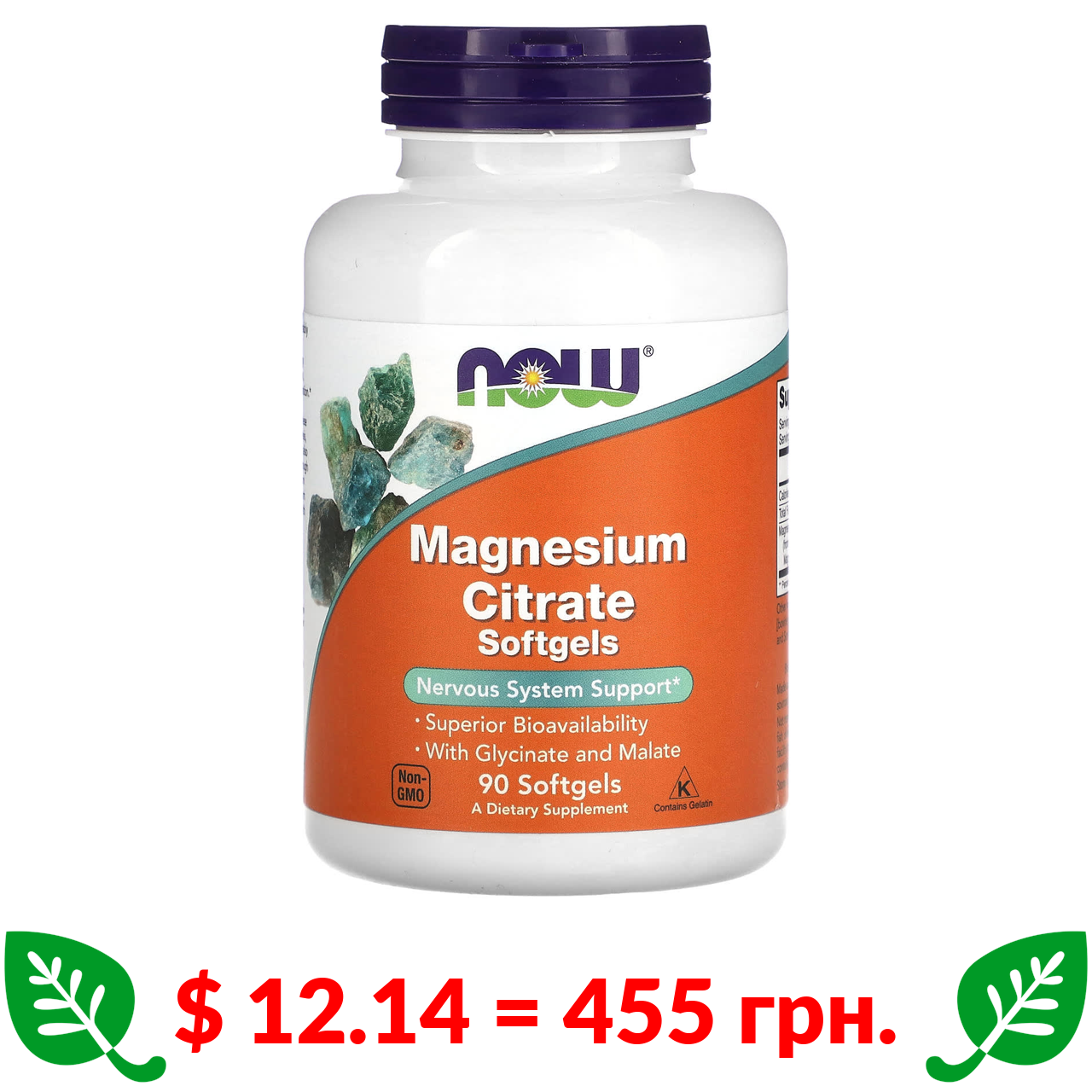 $ 12.14 = 455 грн. Now Foods, Magnesium Citrate, 90 Softgels
