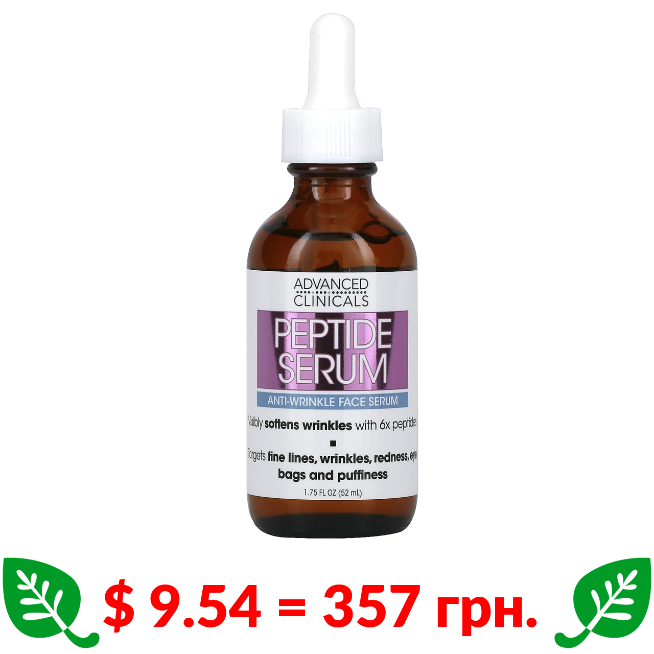 $ 9.54 = 357 грн. Advanced Clinicals, сироватка з пептидами, 52 мл (1,75 рідк. унції)