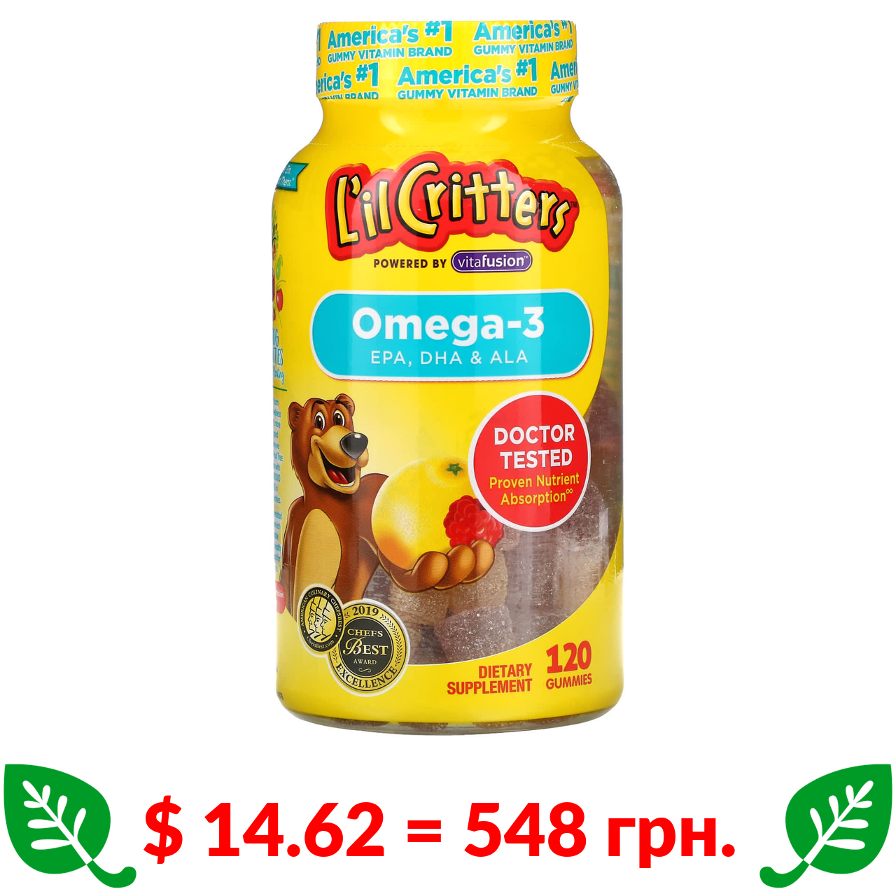 $ 14.62 = 548 грн. L’il Critters, омега-3, зі смаком малини та лимонаду, 120 жувальних цукерок