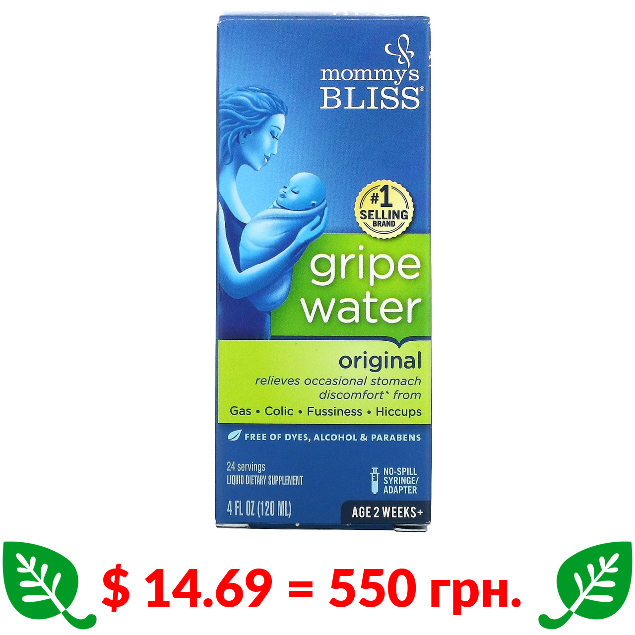 $ 14.69 = 550 грн. Mommy’s Bliss, Gripe water original, 120 мл (4 рідкі унції)