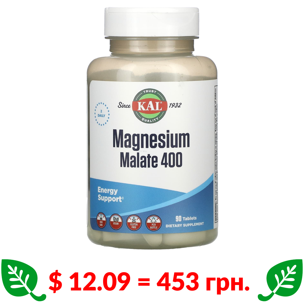 $ 12.09 = 453 грн. KAL, малат магнію 400, 90 таблеток