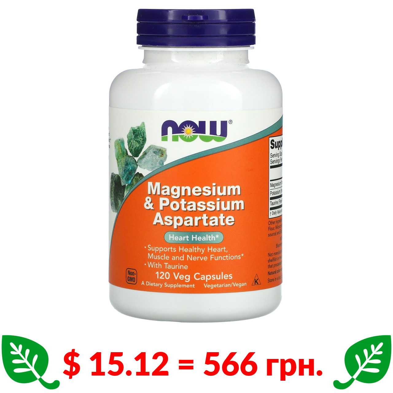 $ 15.12 = 566 грн. Now Foods, аспартат магнію та калію, 120 рослинних капсул