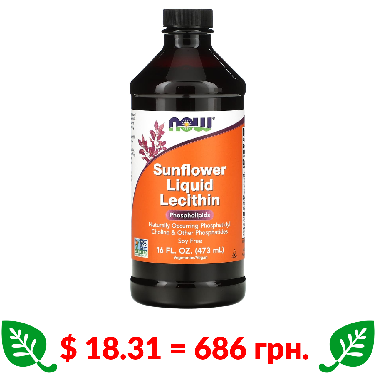 $ 18.31 = 686 грн. Now Foods, рідкий соняшниковий лецитин, 473 мл (16 рідк. унцій)