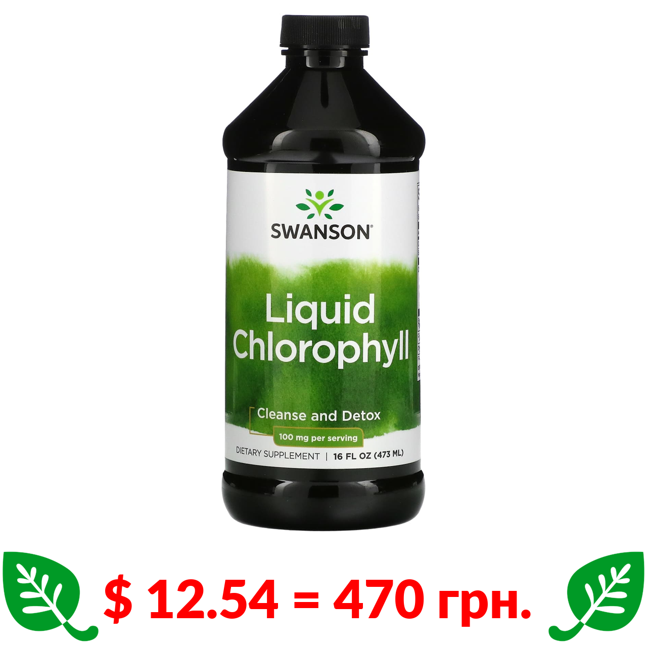 $ 12.54 = 470 грн. Swanson, рідкий хлорофіл, 100 мг, 473 мл (16 рідк. унцій)