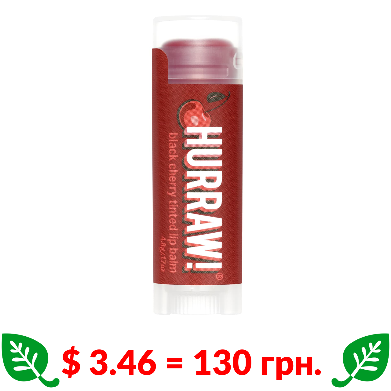 $ 3.46 = 130 грн. Hurraw!, Відтіночний бальзам для губ, чорна вишня, 4,8 г (17 унцій)