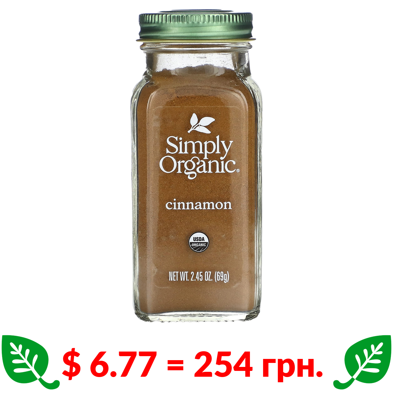 $ 6.77 = 254 грн. Simply Organic, кориця, 69 г (2,45 унції)
