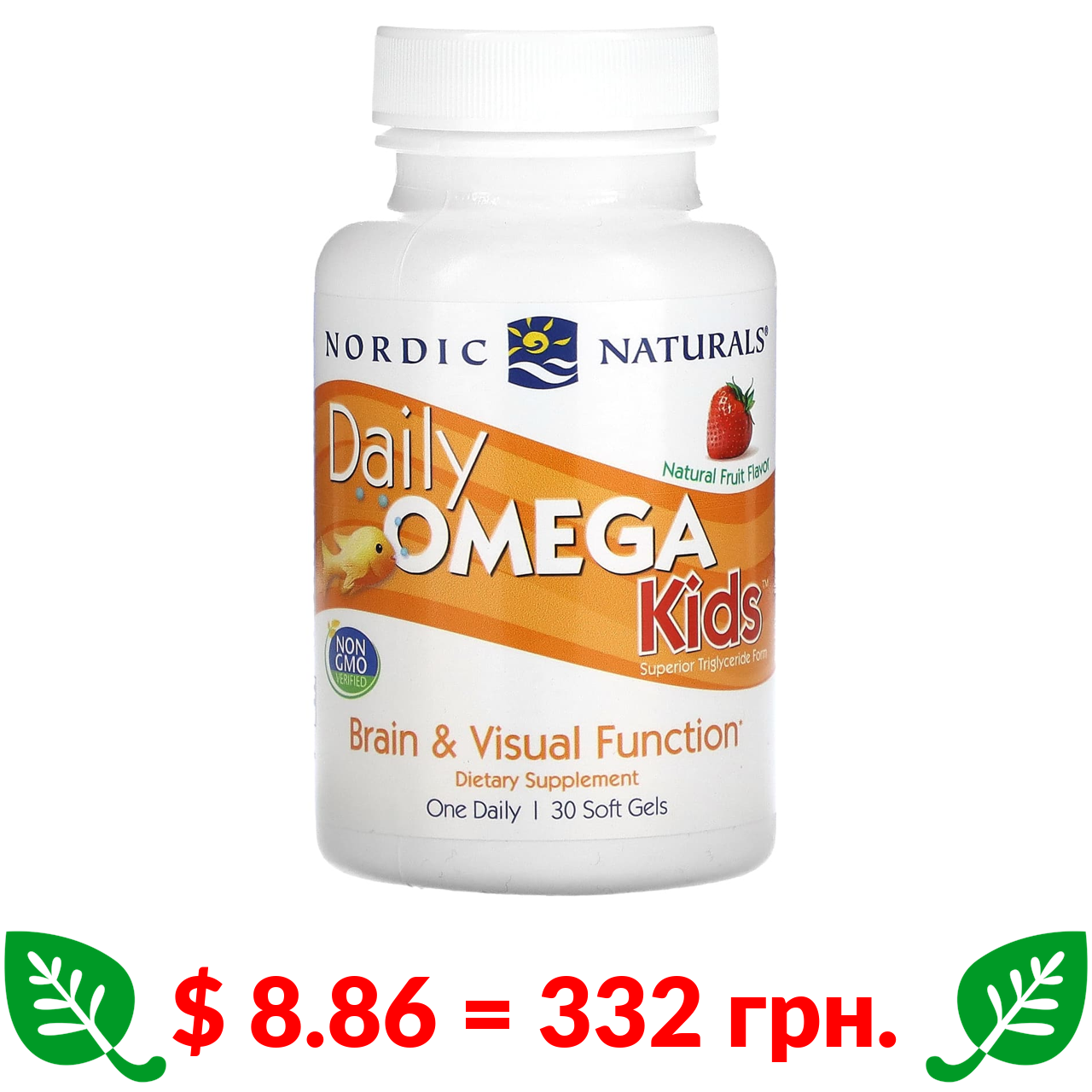 $ 8.86 = 332 грн. Nordic Naturals, омега для дітей, для щоденного вживання, зі смаком натуральних фруктів, 340 мг, 30 капсул