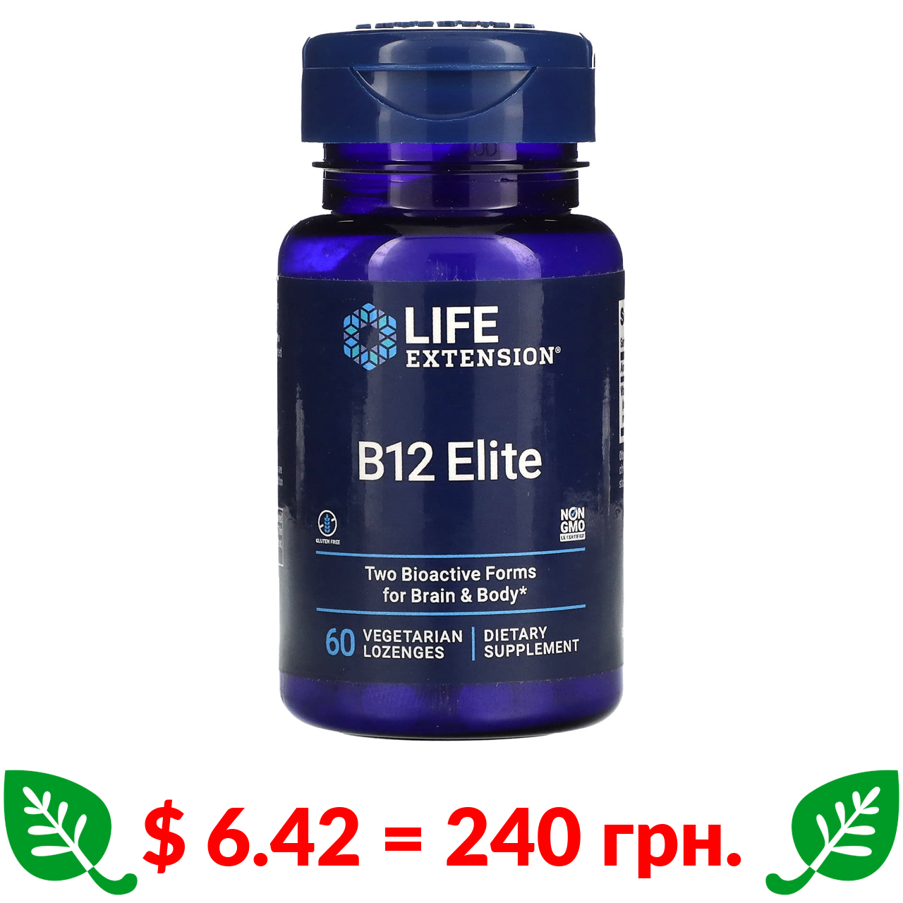 $ 6.42 = 240 грн. ????️ у кошику ????️ Life Extension, B12 Elite, 60 Vegetarian Lozenges