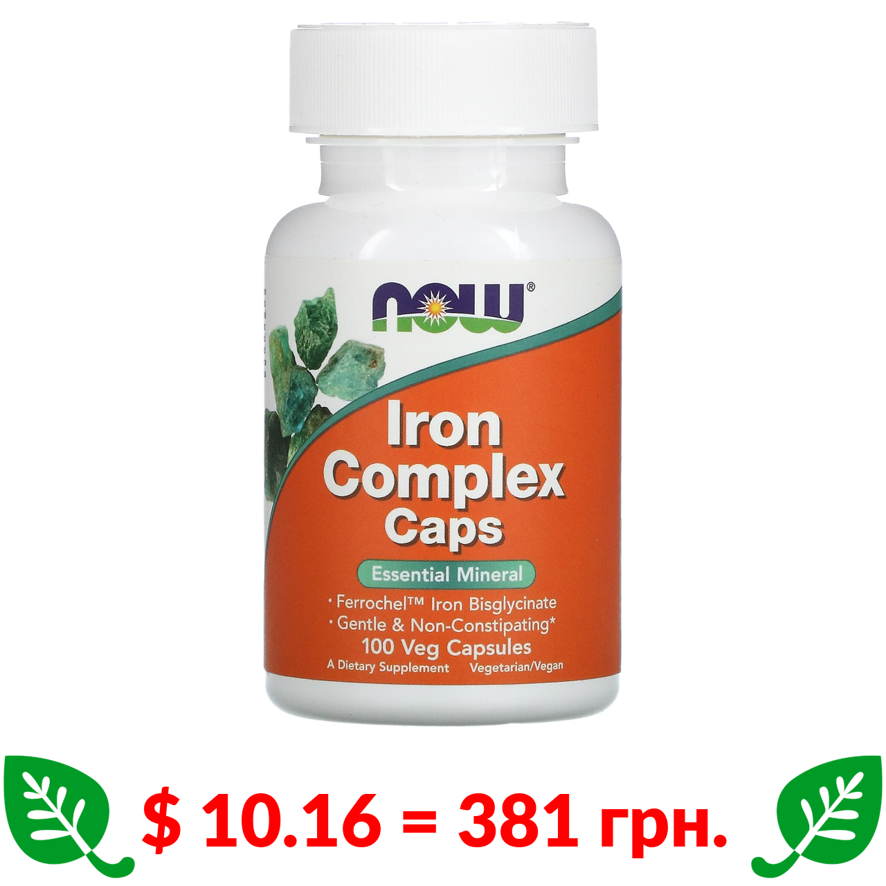 $ 10.16 = 381 грн. Now Foods, капсули з комплексом заліза, 100 рослинних капсул