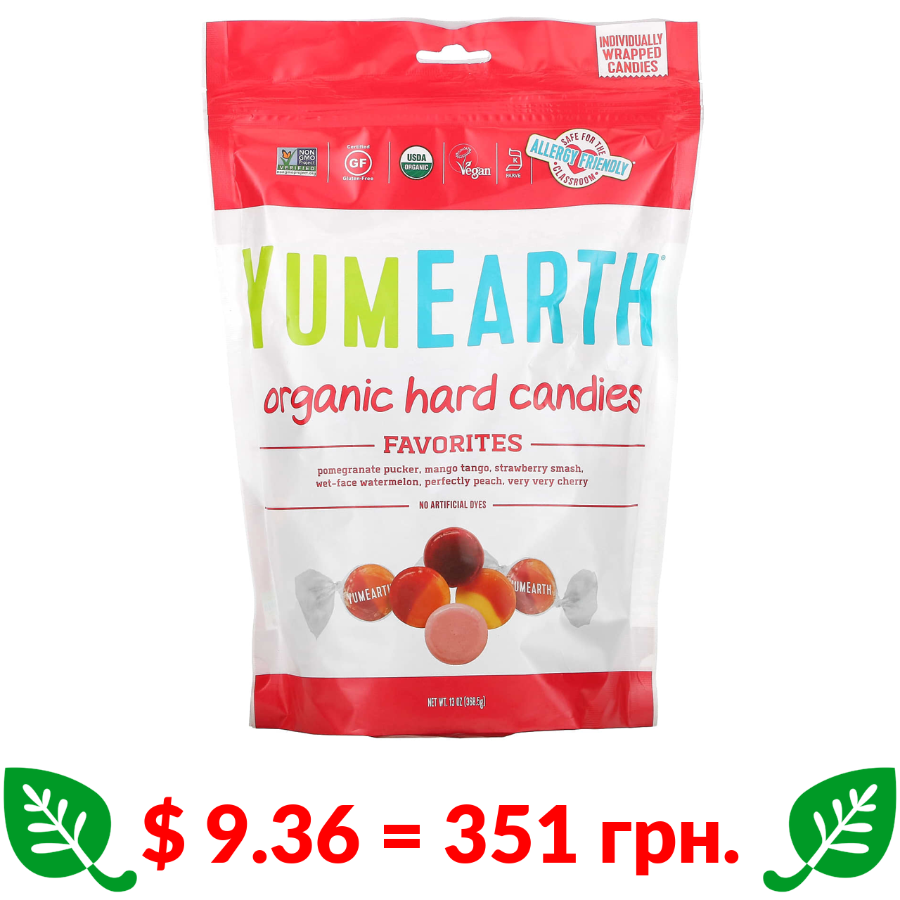$ 9.36 = 351 грн. ????️ у кошику ????️ YumEarth, органічні льодяники, улюблені фрукти, 368,5 г (13 унцій)